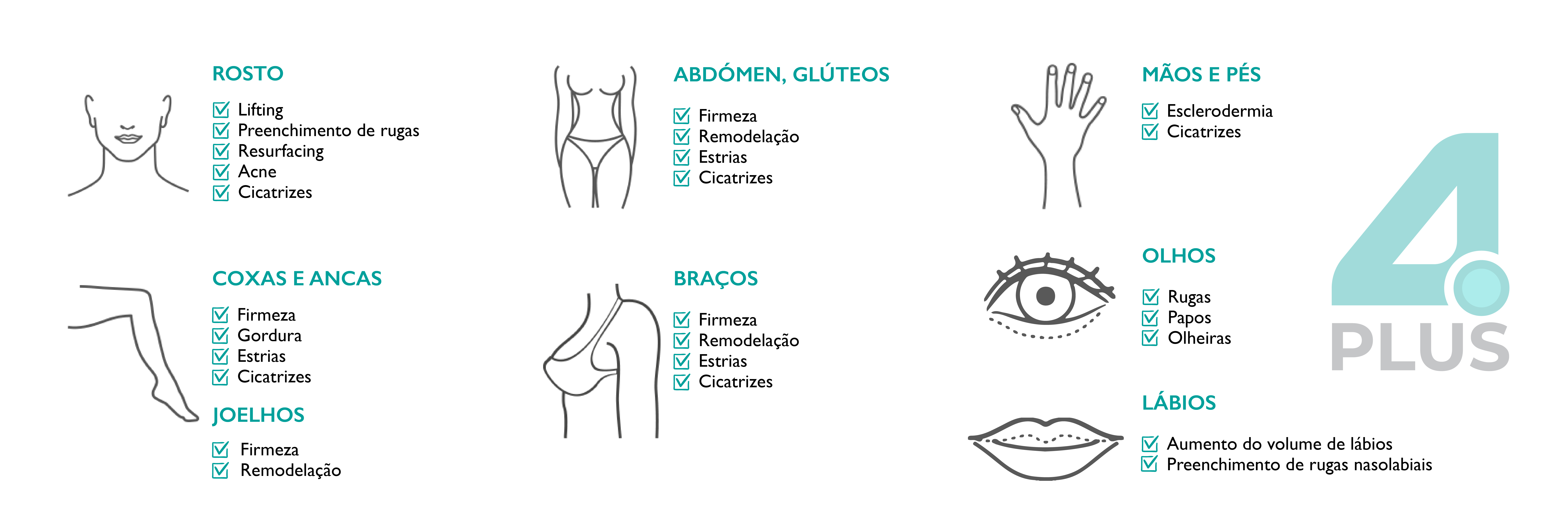 A última inovação tecnológica em radiofrequência dinâmica, com 4 emissores/recetores que tornam o 4Plus verdadeiramente revolucionário e único com resultados imediatos e permanentes.
