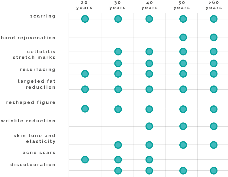 Desta forma reduzem-se cicatrizes, estrias, marcas de acne e o ressurfacing (rejuvenescimento facial total)
